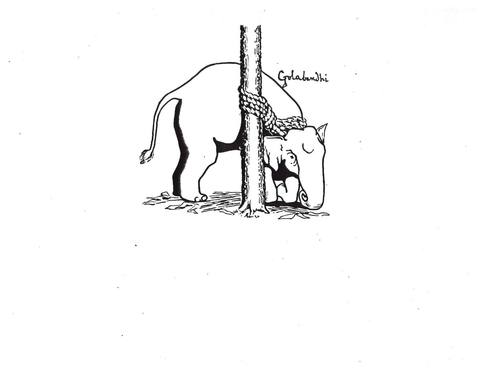 The method for training Asian elephants is rather brutal. They are tied very closely to a tree by the neck (See Appendix B), which sometimes give them blisters. They are taken to and from the water holes by the kunkis. The kunkis are trained to unloose and re-tether the noose about the wild elephants’ neck. After a couple of days, the trainers take the legs of the captured elephants and stretches the front and back legs so that they are around 4 to 5 feet apart. The trainers take the elephants’ legs and tie them to a tree at their ankles. This is not a natural position for elephants because the elephants’ front legs are normally a couple of feet from the back legs, whereas when they are stretched, the front legs are 4 to 5 feet wider than the back legs and this is not a normal position for elephants. This stretched position makes standing on all four legs difficult and tiring. A cow will generally lean or kneel on her front legs in order to get some relief. This generally goes on for 10 to 15 days depending on the willingness of the cow to comply. After the cow realizes that she cannot free herself from the ropes around her legs, she gives up and is considered broken. At this point a wild elephant begins to act like a tame elephant and at this point they are taken to an auction to be bought by individuals or dealers. The training period lasts much longer for more stubborn elephants. The khantis have been known to brutally beat the elephants, bite their ears and make them bleed because of the many veins found in their very vulnerable ears.